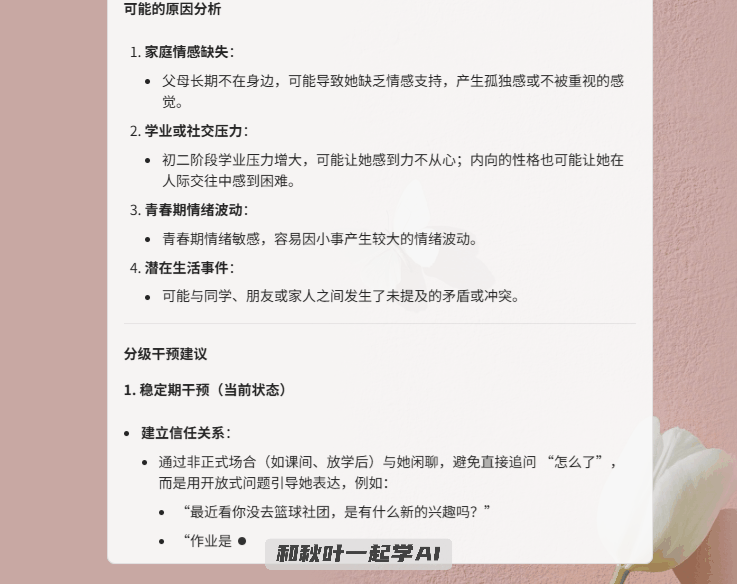 好比,能够帮你挖掘学生的心理小搅扰,给出分级干涉方案,